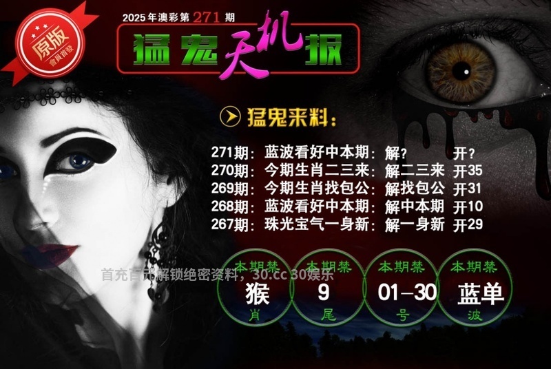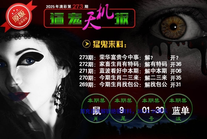 273期猛鬼天机报:【荣华富贵今中事】 ①推荐生肖:猴龙虎狗羊蛇 ③绝杀半波:蓝单 |