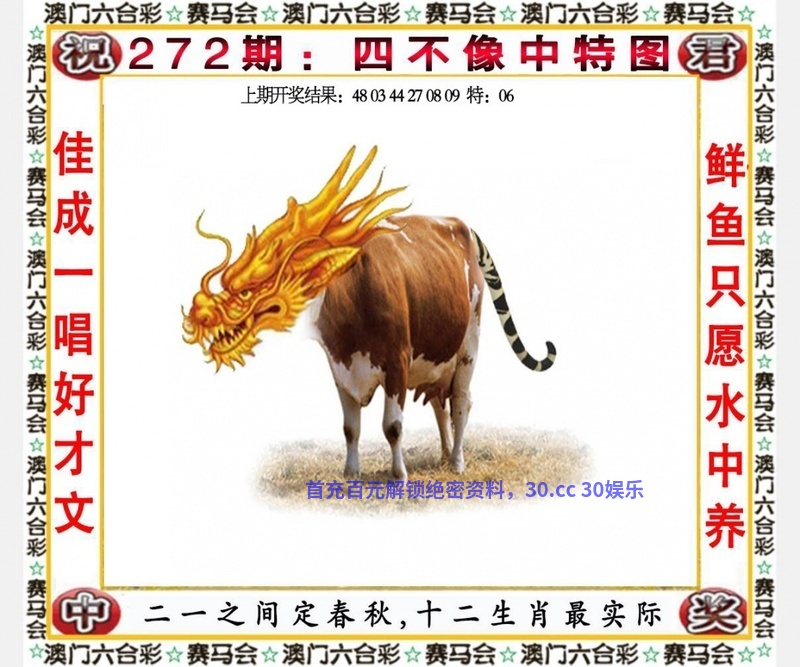 266期:✬三头中特✬【0.3.4头】✬开:牛41准 |